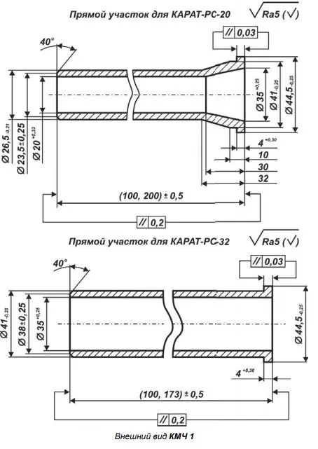 Прямой участок представляет собой гладкую металлическую трубу, не имеющую местных гидравлических сопротивлений, на одном конце которой проточен элемент монтажа (ниппель), а другой – подготовлен под сварку в трубопровод.