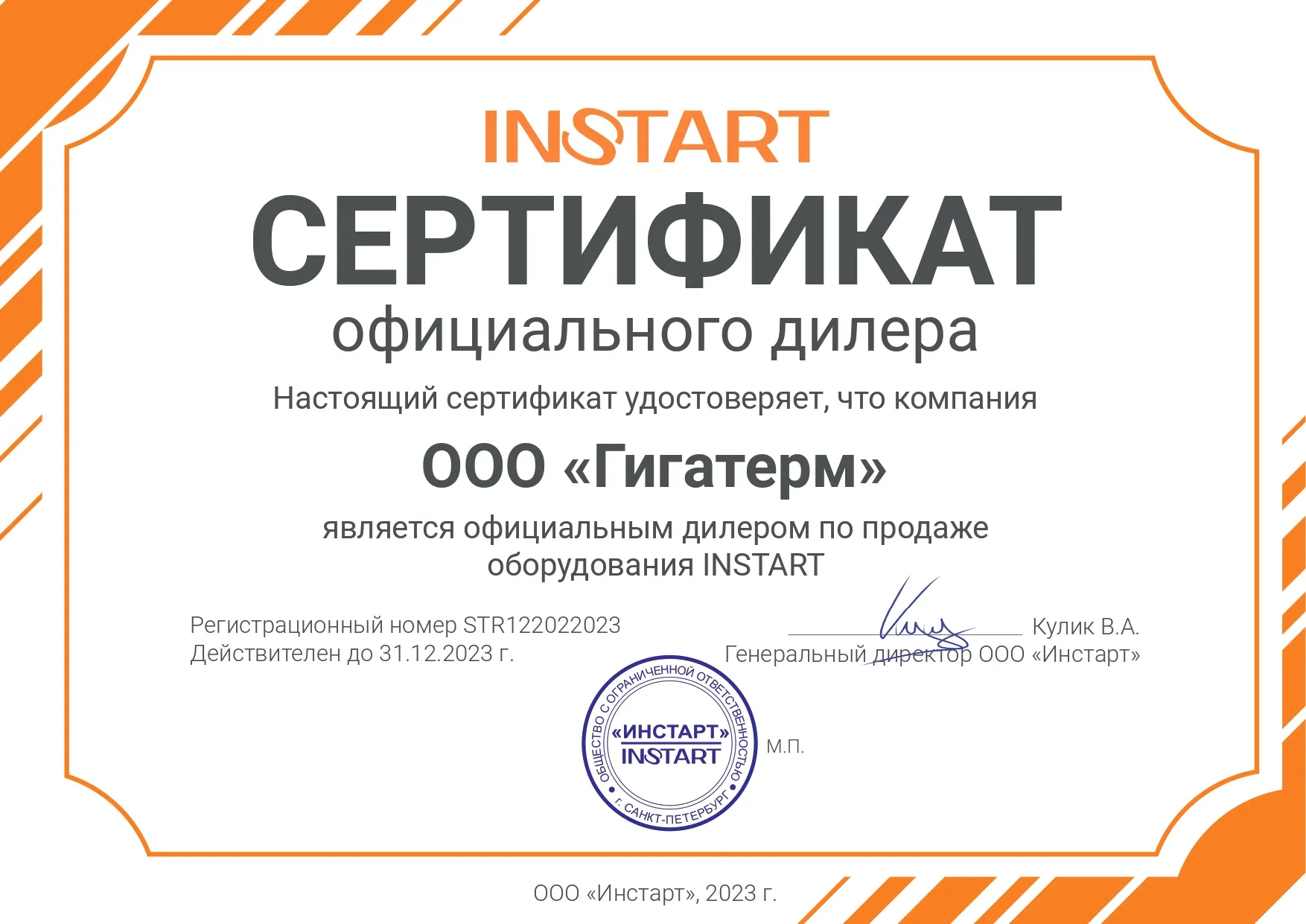 Сертификат Инстарт Гигатерм